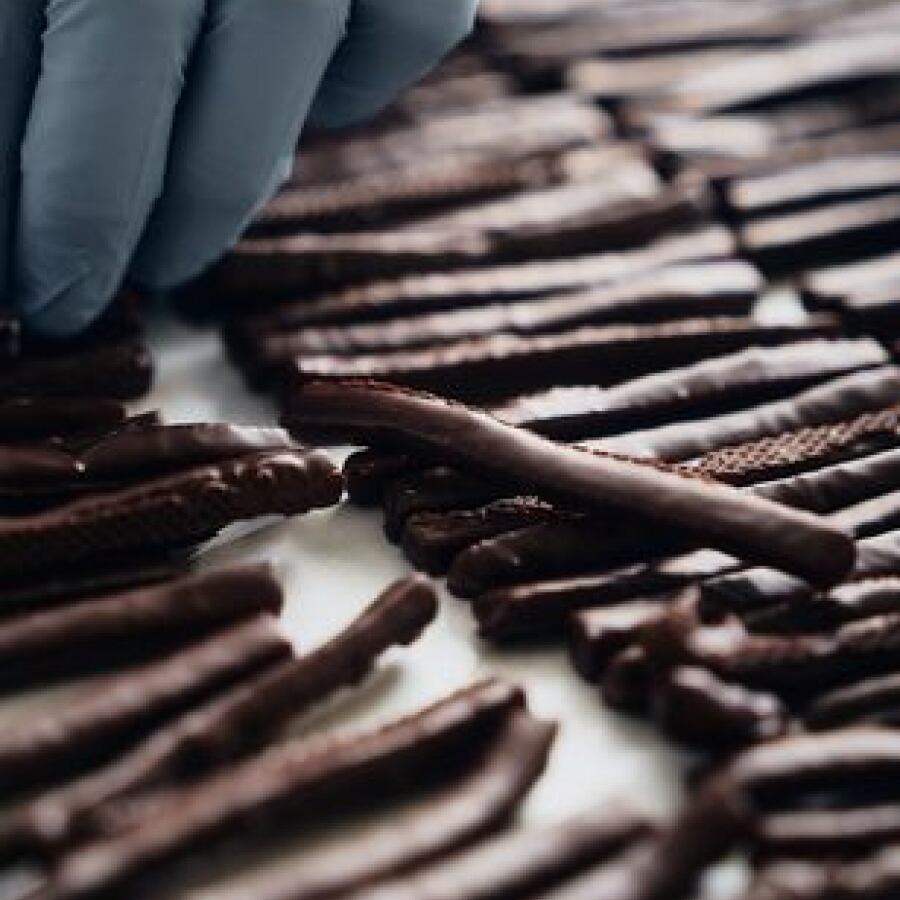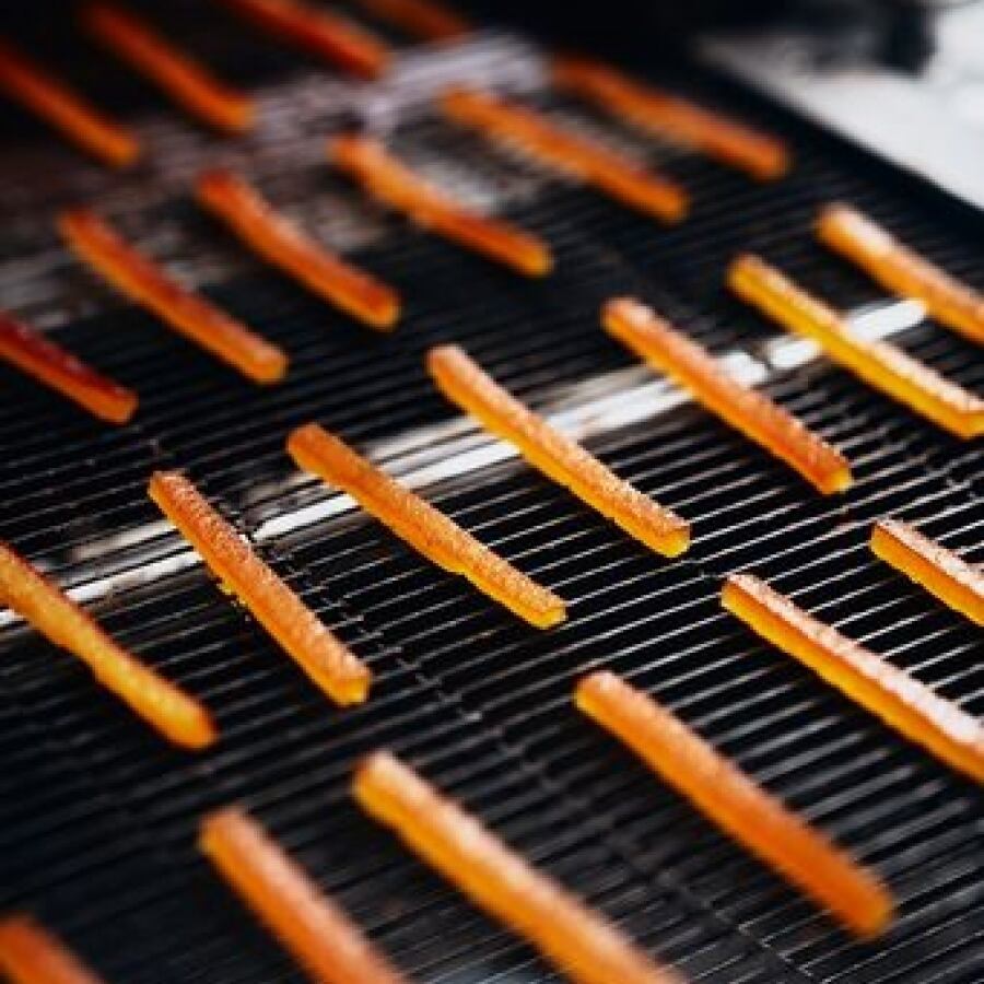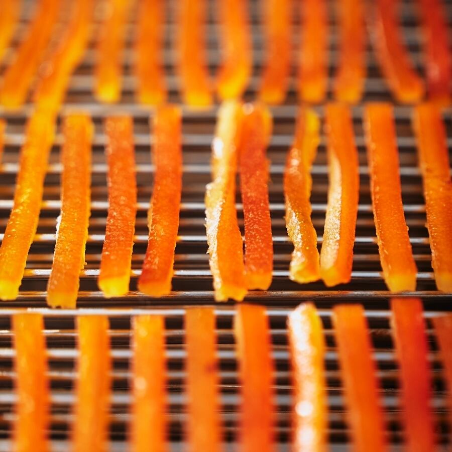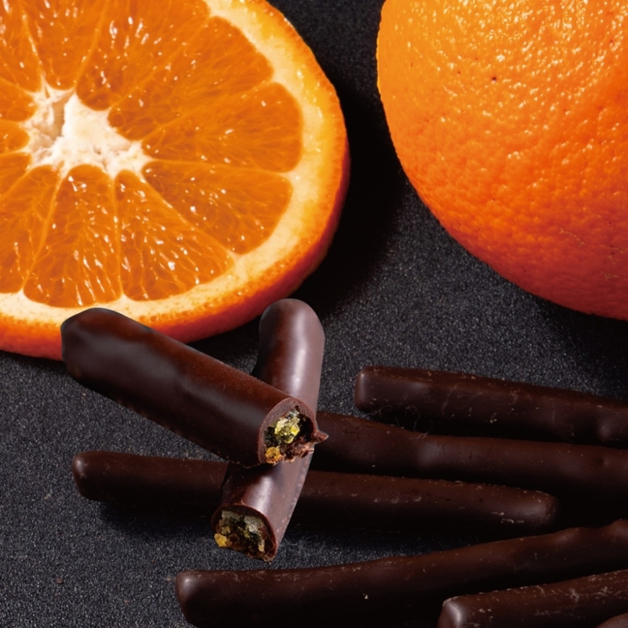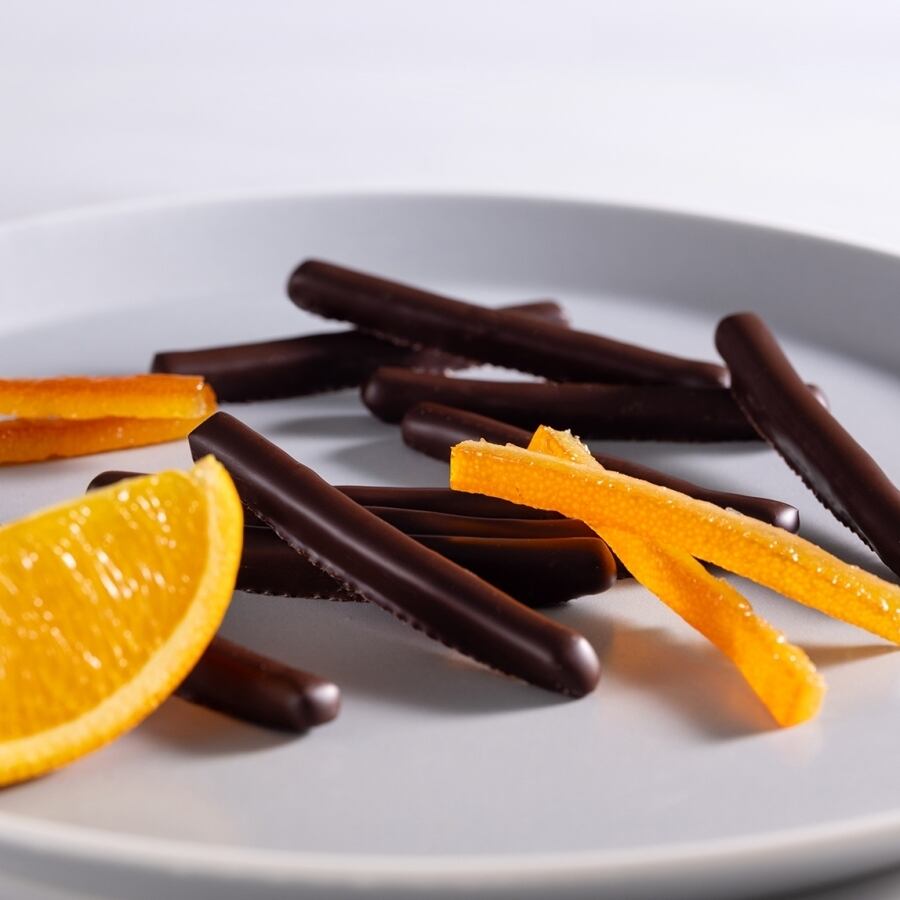 フランス産のオレンジピールをショコラノワールでコーティング。オレンジの爽やかな酸味とショコラのバランスにこだわり、コーティングの量を微調整し仕上げています。